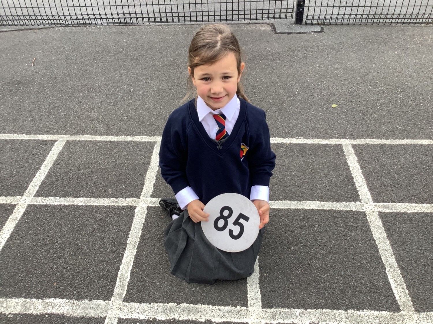 We have been learning to find numbers on a blank square. We have been talking about how we know this is where the number goes and we have been using correct mathematical language. We enjoyed exploring what we have been learning on the big 100 square outside.