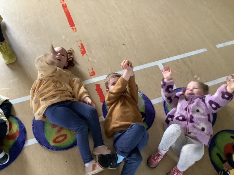 We all wore yellow today for World Mental Health. In the assembly hall, we followed the Relax Kids model of movement and games, stretching, breathing, massage, positive affirmations and visualisation. We have been developing an awareness of our feelings and learning the Makaton signs for emotions. We played a game where we had to guess the feeling and we talked about what makes us feel different ways. We had a healthy yellow snack of crackers, cheese and bananas. Throughout our Nursery day we seek to promote healthy minds and bodies through appreciating life’s everyday moments, enjoying being together and sharing a laugh, appreciating time spent in nature, exercising, eating healthy and practising relaxation strategies.